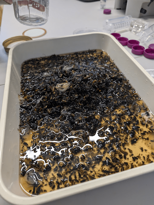 Fig 3. The Contents of one malaise trap collected from Herefordshire, quite an intimidating pile!